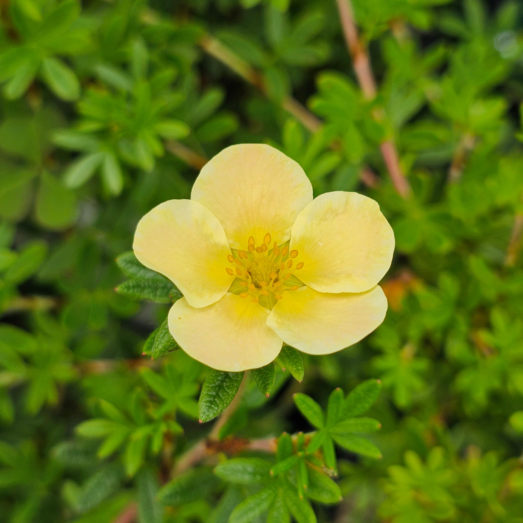 Potentilla 'Peaches and Cream' is a delightful perennial plant known for its beautiful, soft peach and cream-colored flowers that bloom throughout the summer. In cooler climates this shrub will be deciduous. This variety features a compact growth habit, typically reaching about 60cm in height, making it an excellent choice for borders, rock gardens, or containers. The foliage is lush and green, providing a lovely backdrop for the vibrant blooms. 'Peaches and Cream' is also appreciated for its resilience, thriving in a variety of soil types and conditions, and attracting pollinators like bees and butterflies. Overall, it's a charming addition to any garden, bringing a touch of color and elegance.