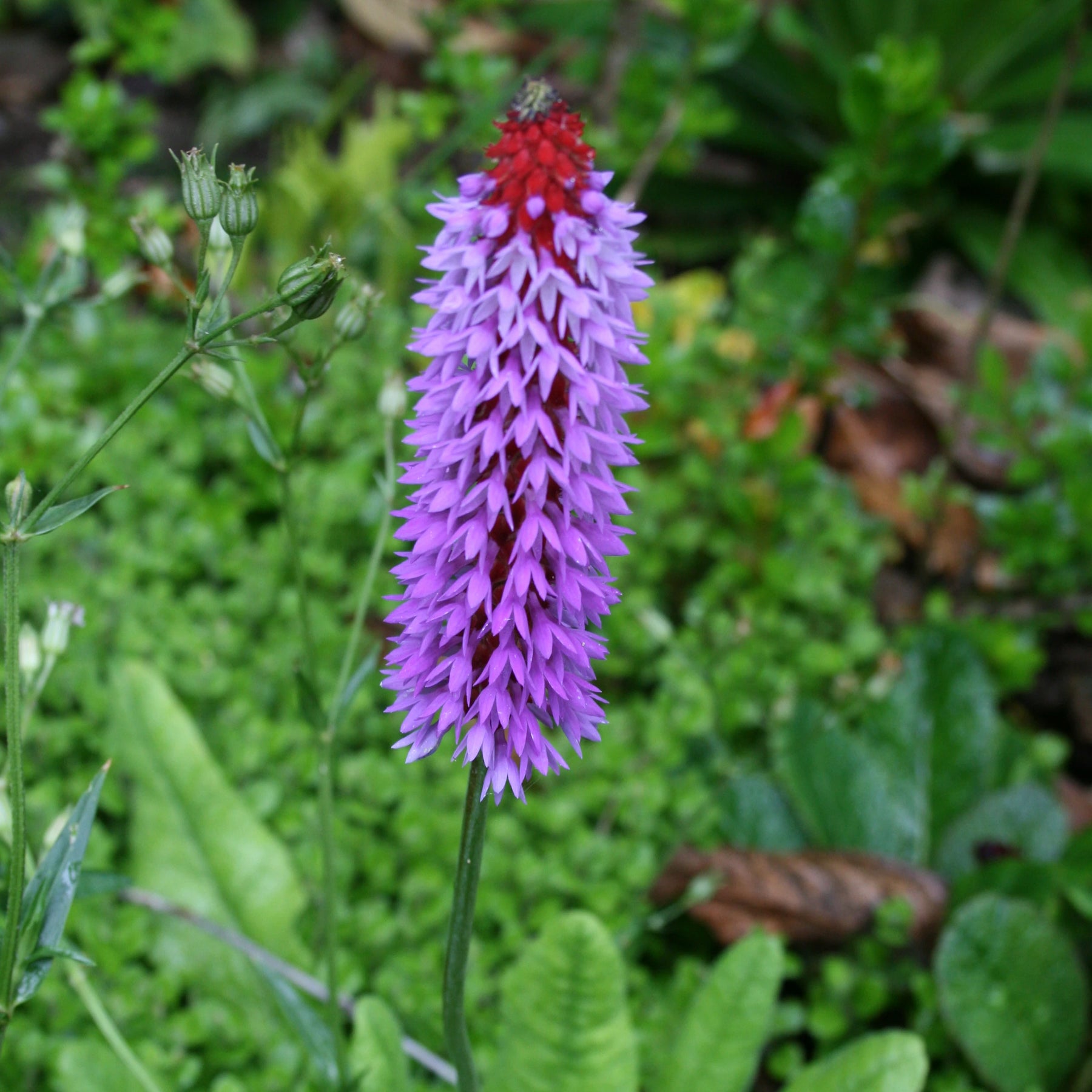 Also known as Orchid Primrose, Primula vialii is very beautiful with its unusual spires of tiny purple flowers. The buds start off red and then open from the bottom up with the tiny purple flowers - a striking flower which when planted en masse is spectacular.