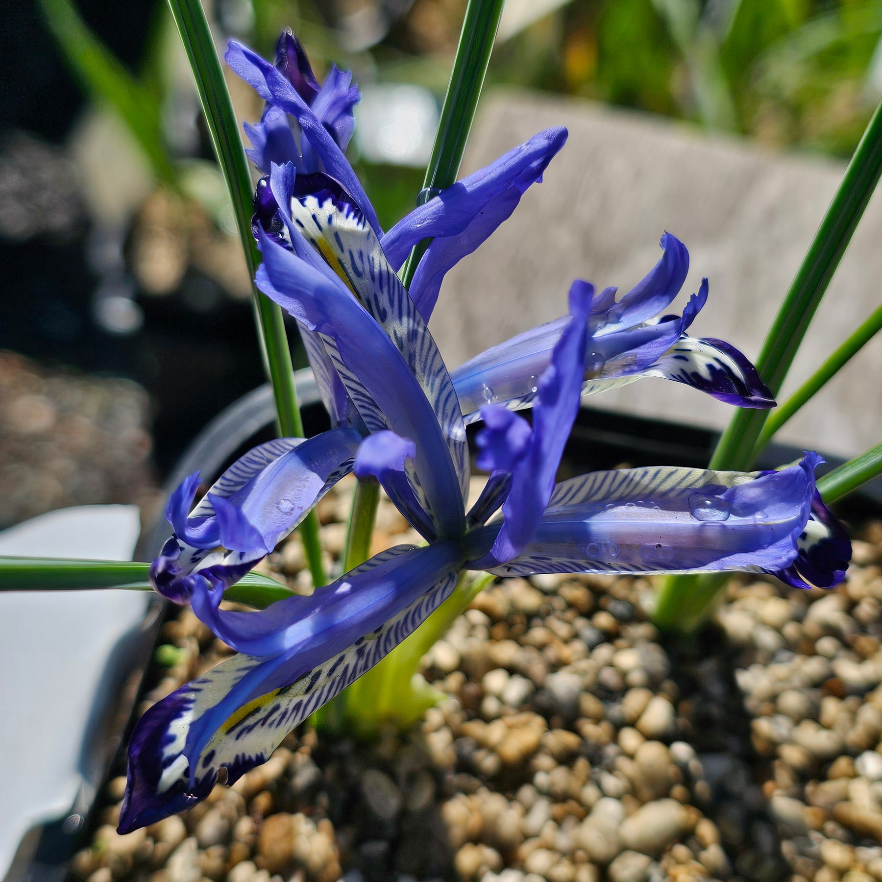 Reticulata irises are dwarf iris, which grow only to about 15cm high but pack a big punch in the spring garden. They look especially lovely in pots on your outdoor dining table.