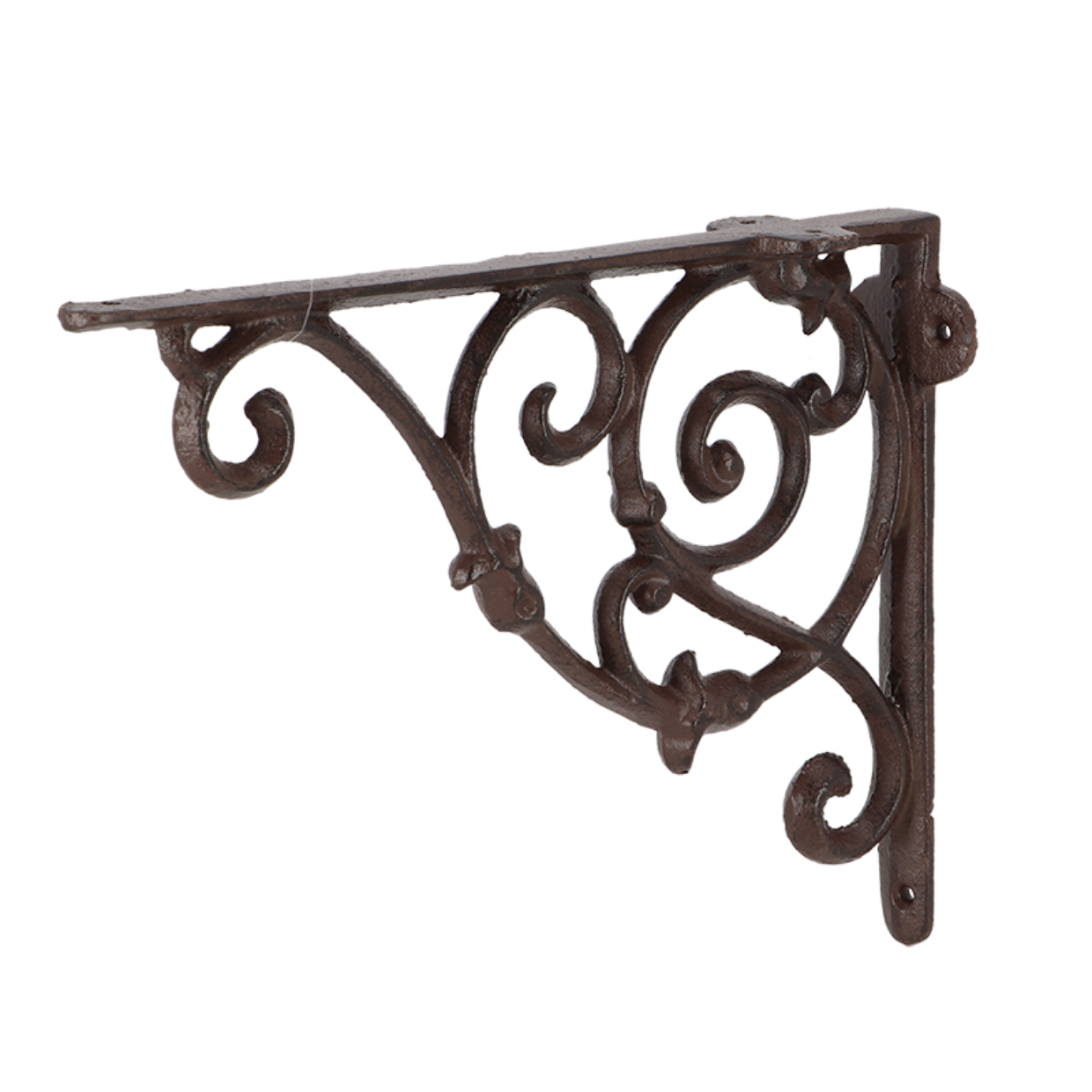 This cast iron bookshelf bracket has been cast according to centuries old tradition and craftsmanship. This support can be used both inside and outside. Hang these supports from a wall and place a shelf on the supports. Here you can place books or potted plants.