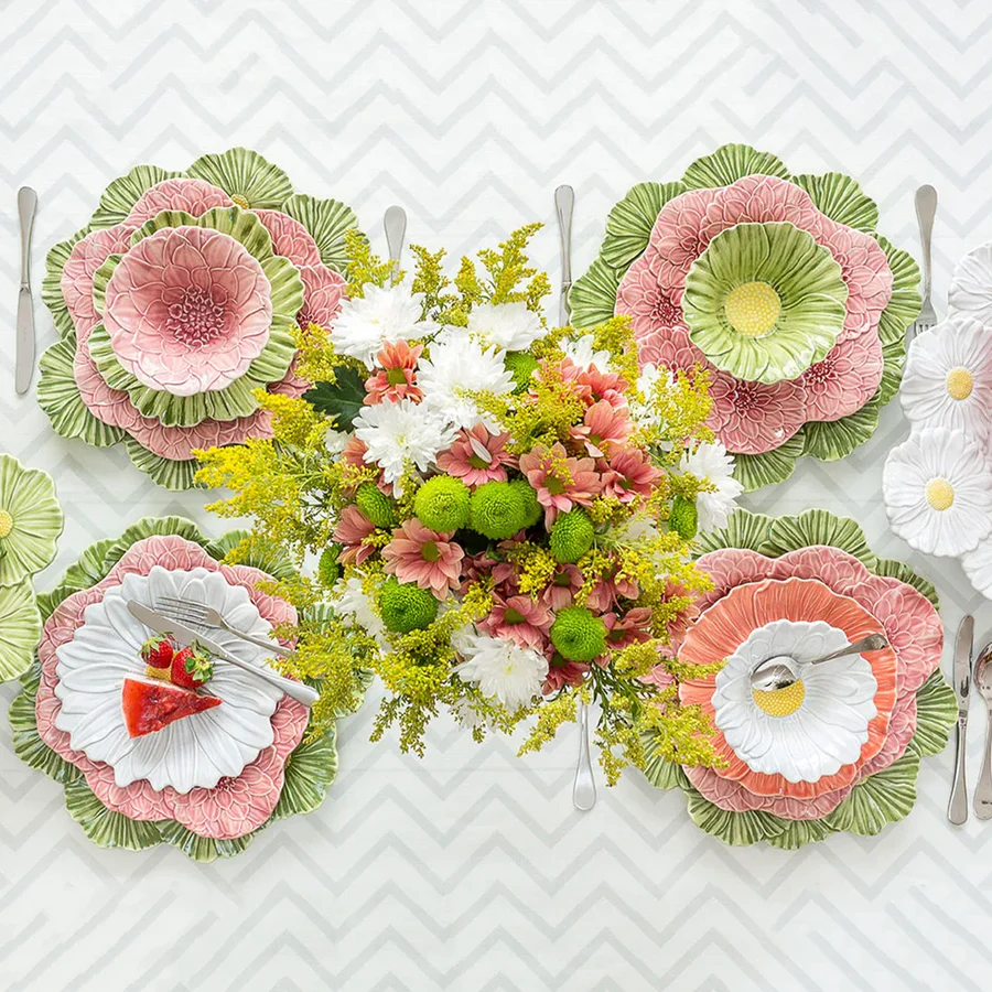 Turn every meal into a floral celebration with the Maria Flor Dinner Plate by Bordallo Pinheiro. Meticulously crafted to replicate the beauty of dahlias, roses, and daisies, each plate is a work of art that doubles as functional tableware. Made in Portugal from premium earthenware, every detail is hand-painted to bring the vibrant energy of Spring blooms into your home.