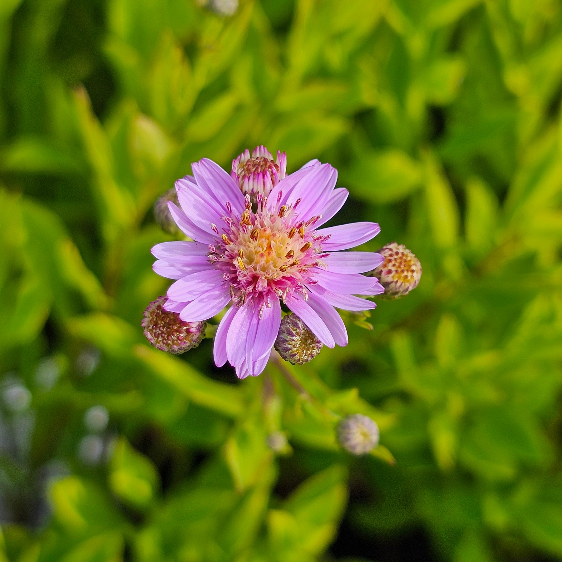 A beautiful little False Aster brand new to Puriri Lane @ Addenbrooke! We are delighted to have this as one of our new lines. Gorgeous little pink blooms in masses from the end of summer into autumn which attract all the pollinators, the whole plants seem to hum on a sunny day! Grows to around 30 cm tall and wide, they look lively in the front of the border, in pots and in rock gardens. They prefer a fully sunny spot, with good drainage. Cut back and add compost around the base of it after its trim to keep it happy.
