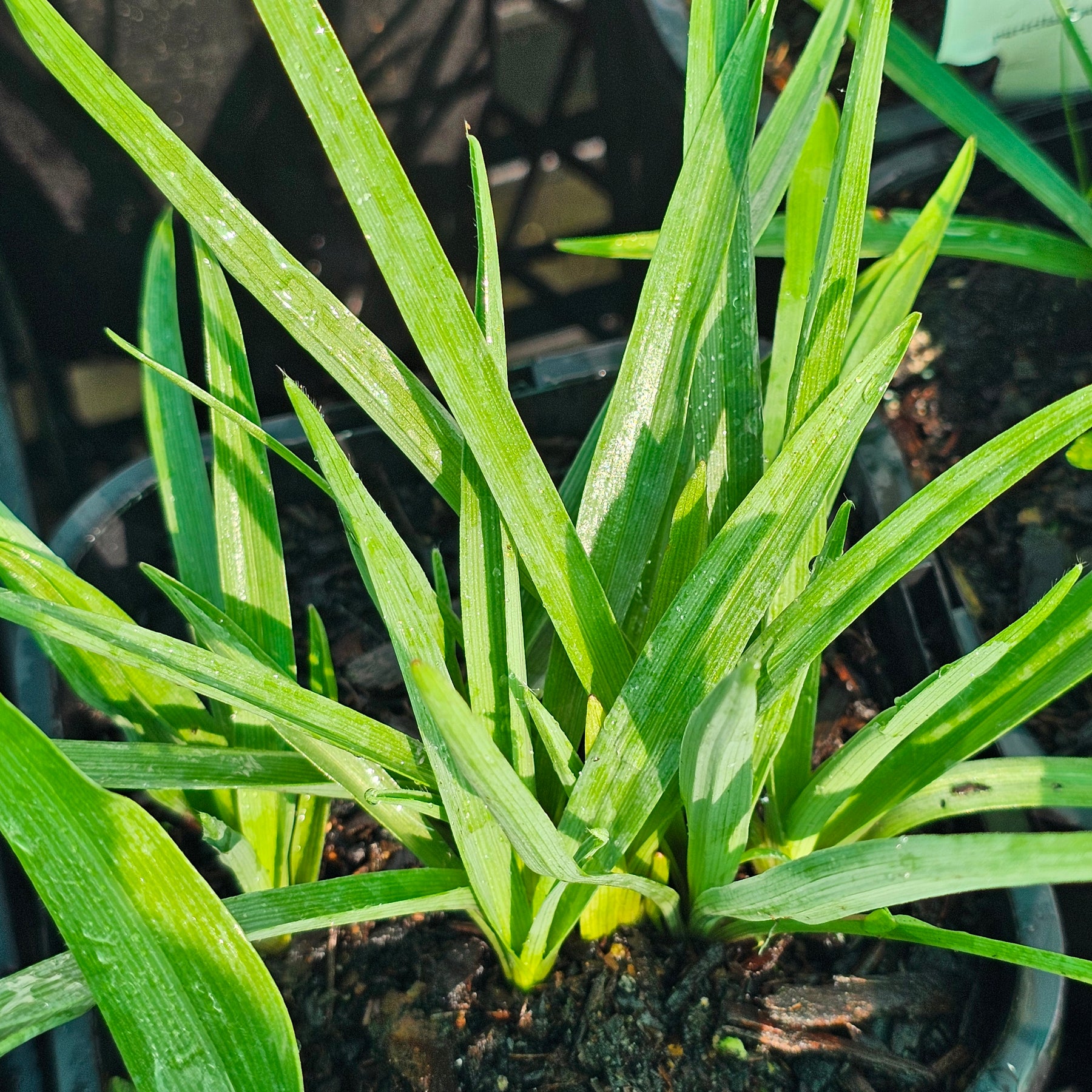 This plant has strappy evergreen stems with curving leaves where they meet the stem. The flowers are three petalled and are a striking hot pink, cerise colour which emerge through the summer.