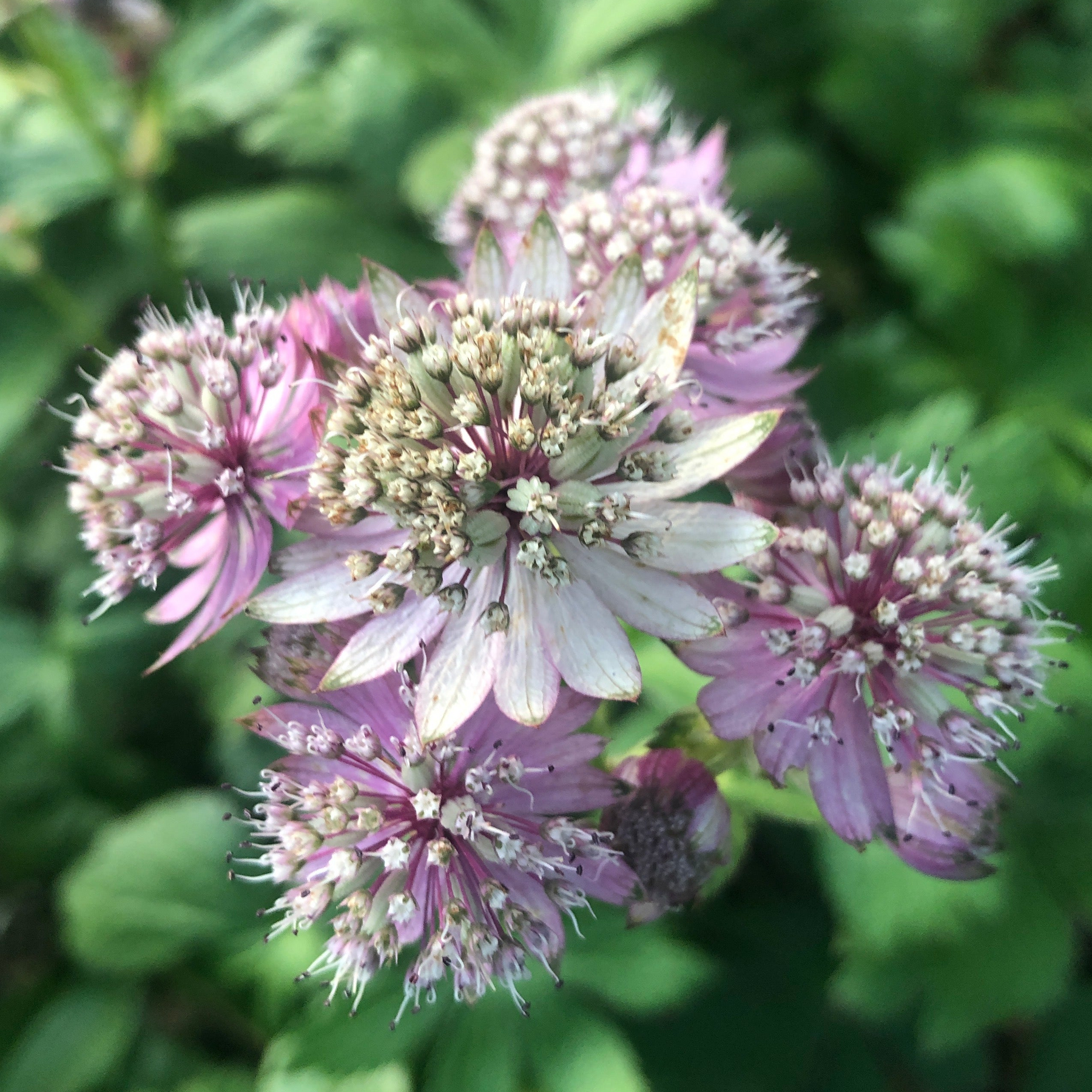Each small masterwort flower is made up of umbels of tiny flowers that are framed by a papery bract. An excellent cut flower that also dries well. Prefers a spot in partial shade but does tolerate full sun and prefers to be kept moist, we mulch our plants to help the soil retain its moisture. Bees also love this plant. A very popular plant and hard to find!