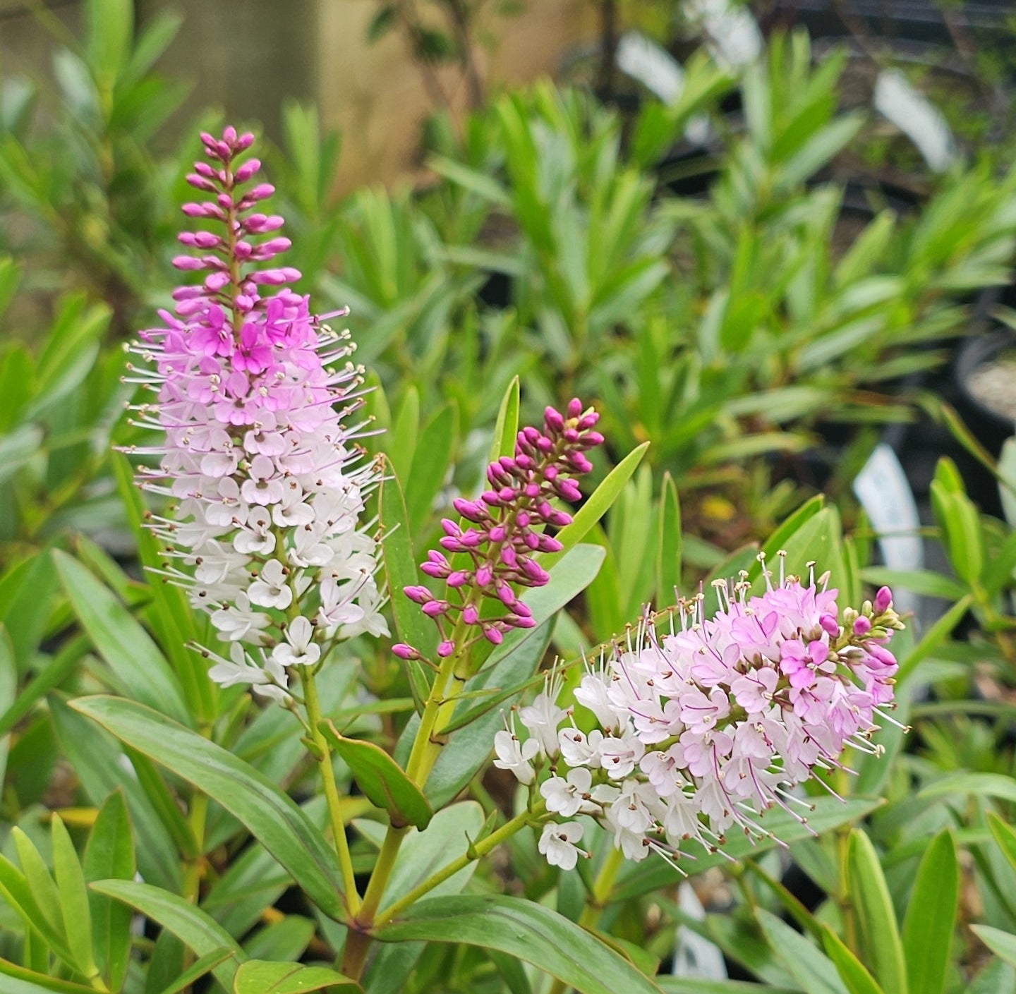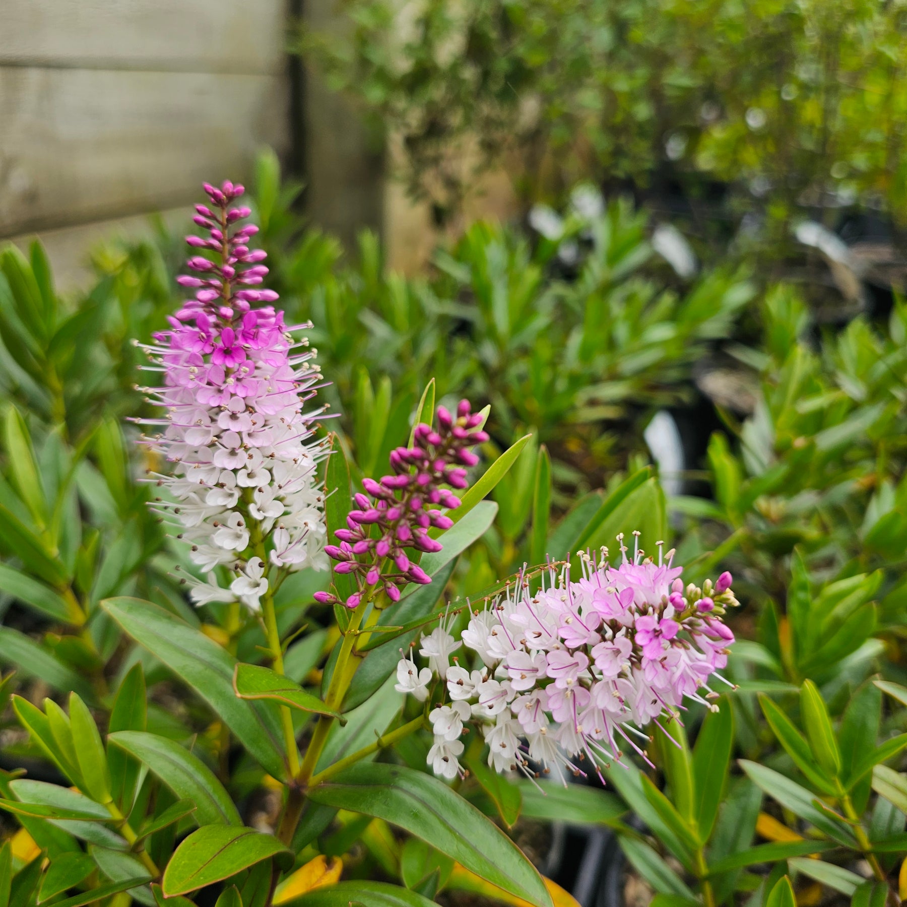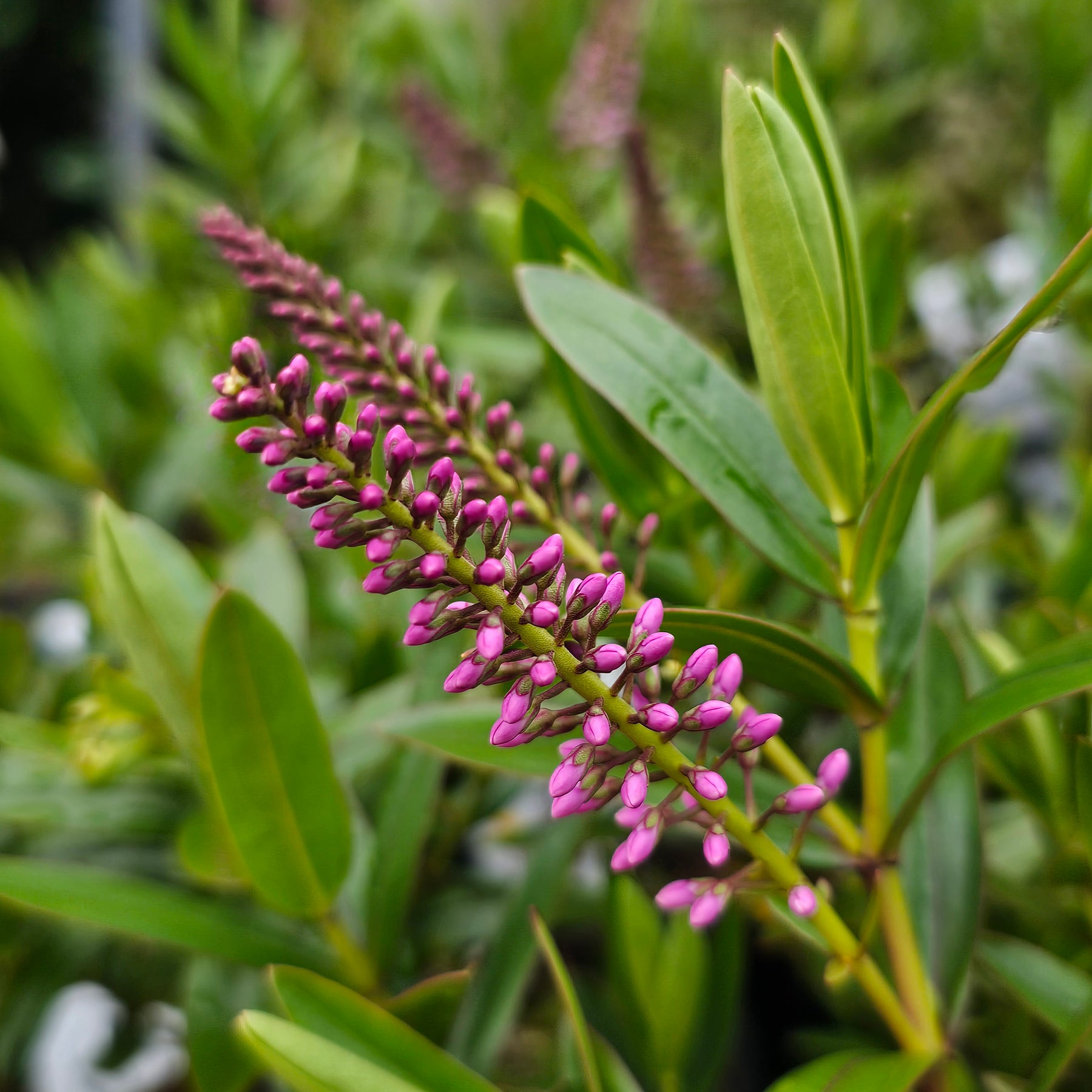 This Hebe thrives in full sun to partial shade and prefers well-drained soil. It's relatively low-maintenance and can tolerate coastal conditions. Regular pruning helps maintain its shape and encourages new growth.