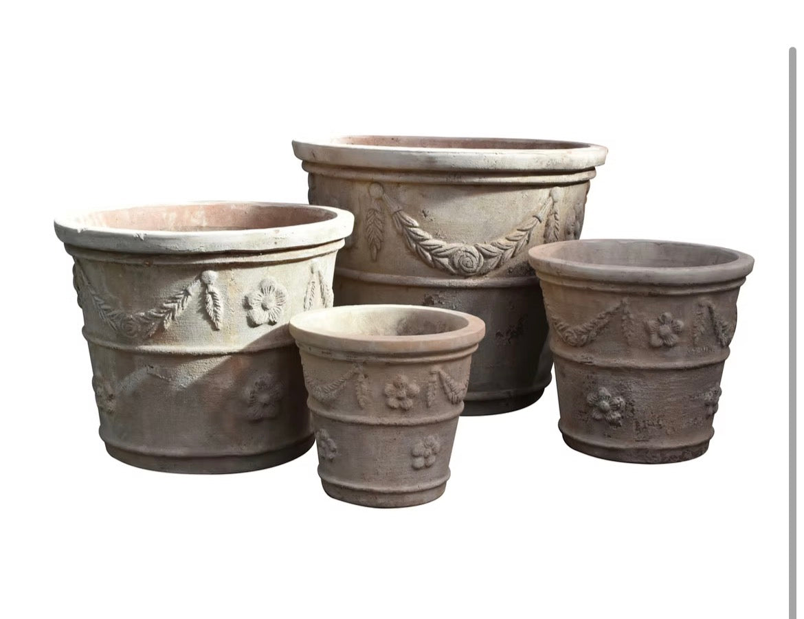 Antique Terracotta Swag Planter Pots | Set Of 4