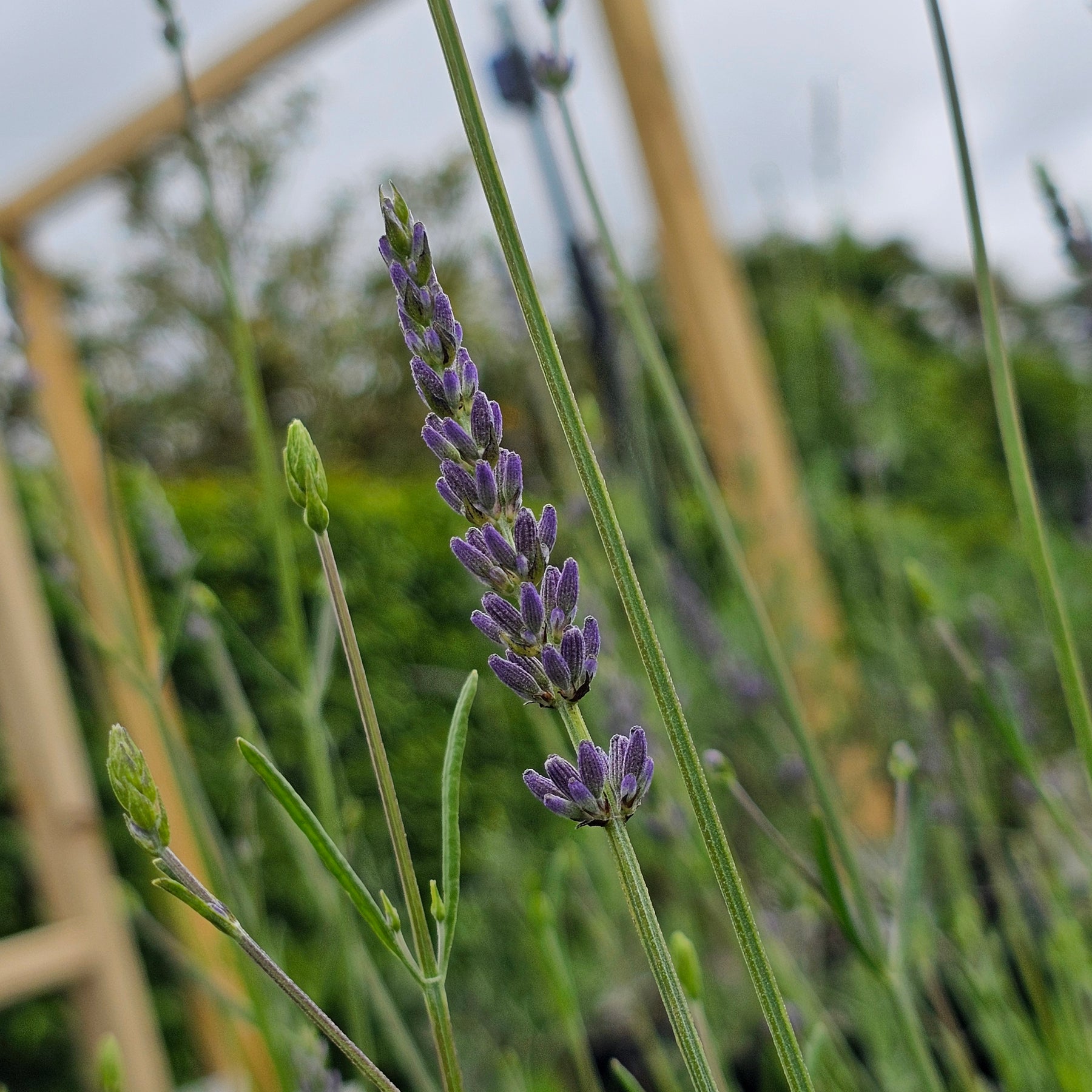 Lavandula × intermedia 'Grosso' is a popular hybrid lavender, renowned for its exceptional fragrance, long flowering season, and robust growth. This cultivar is a cross between Lavandula angustifolia and Lavandula latifolia, combining the best qualities of both parent species. 'Grosso' produces abundant, large, and deep violet-blue flower spikes that bloom throughout the summer, attracting bees and butterflies. The plant has a vigorous, bushy habit, making it ideal for creating hedges, borders, or mass plantings. The flowers and foliage are highly aromatic, perfect for crafting essential oils, potpourri, and culinary uses. 'Grosso' is also known for its high oil yield, making it a favorite among commercial growers. It thrives in full sun and well-drained soil, and it is relatively drought-tolerant once established. Grows to approx. 90cm.