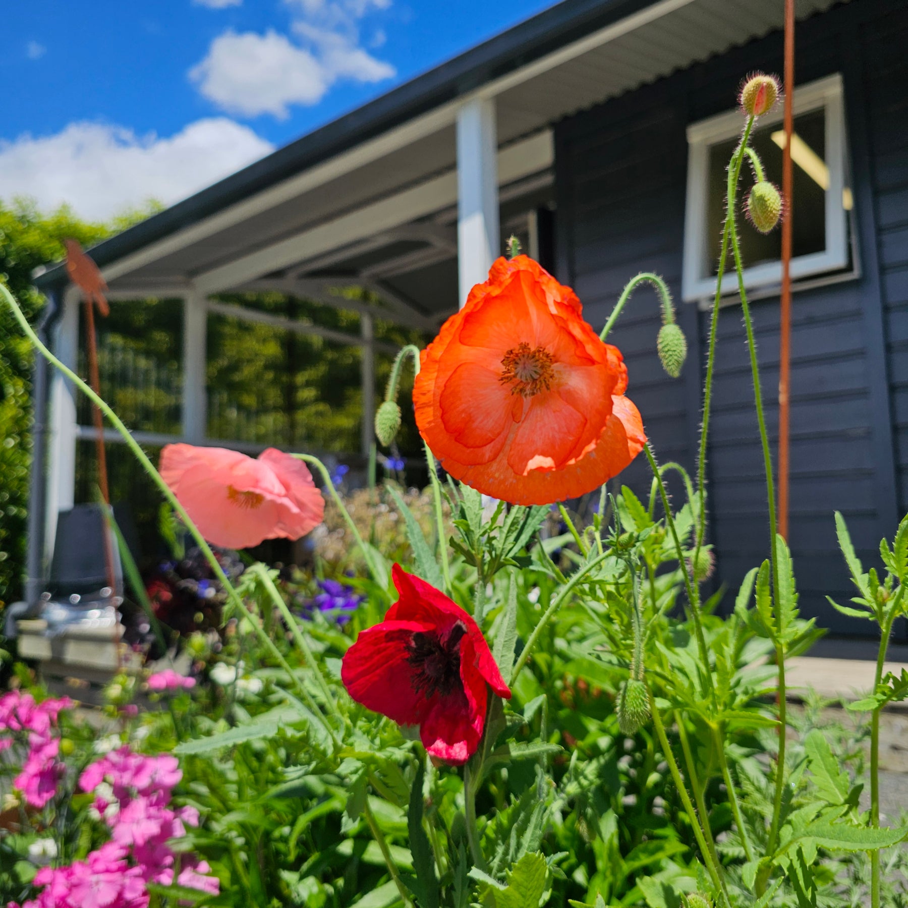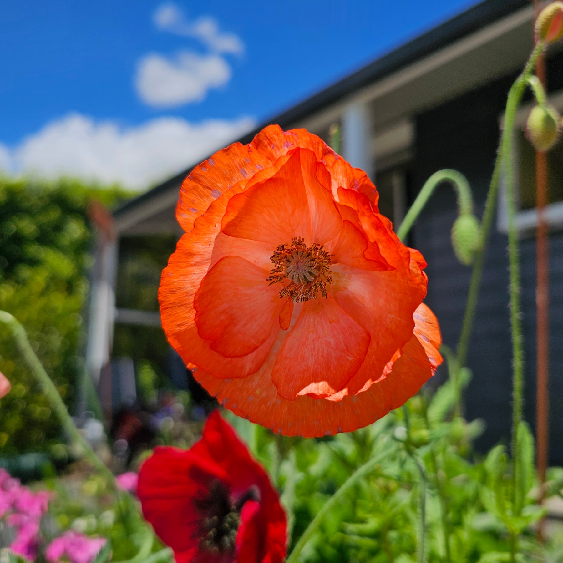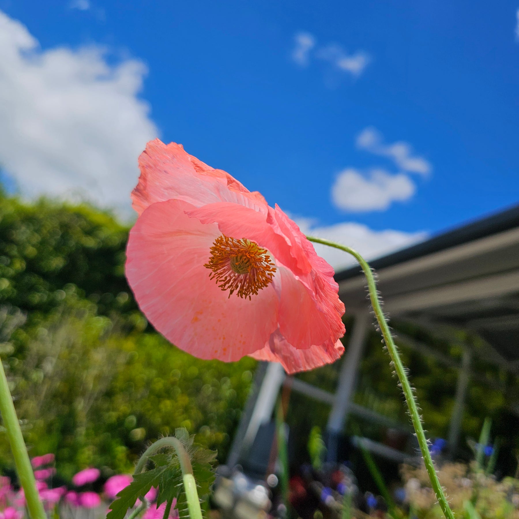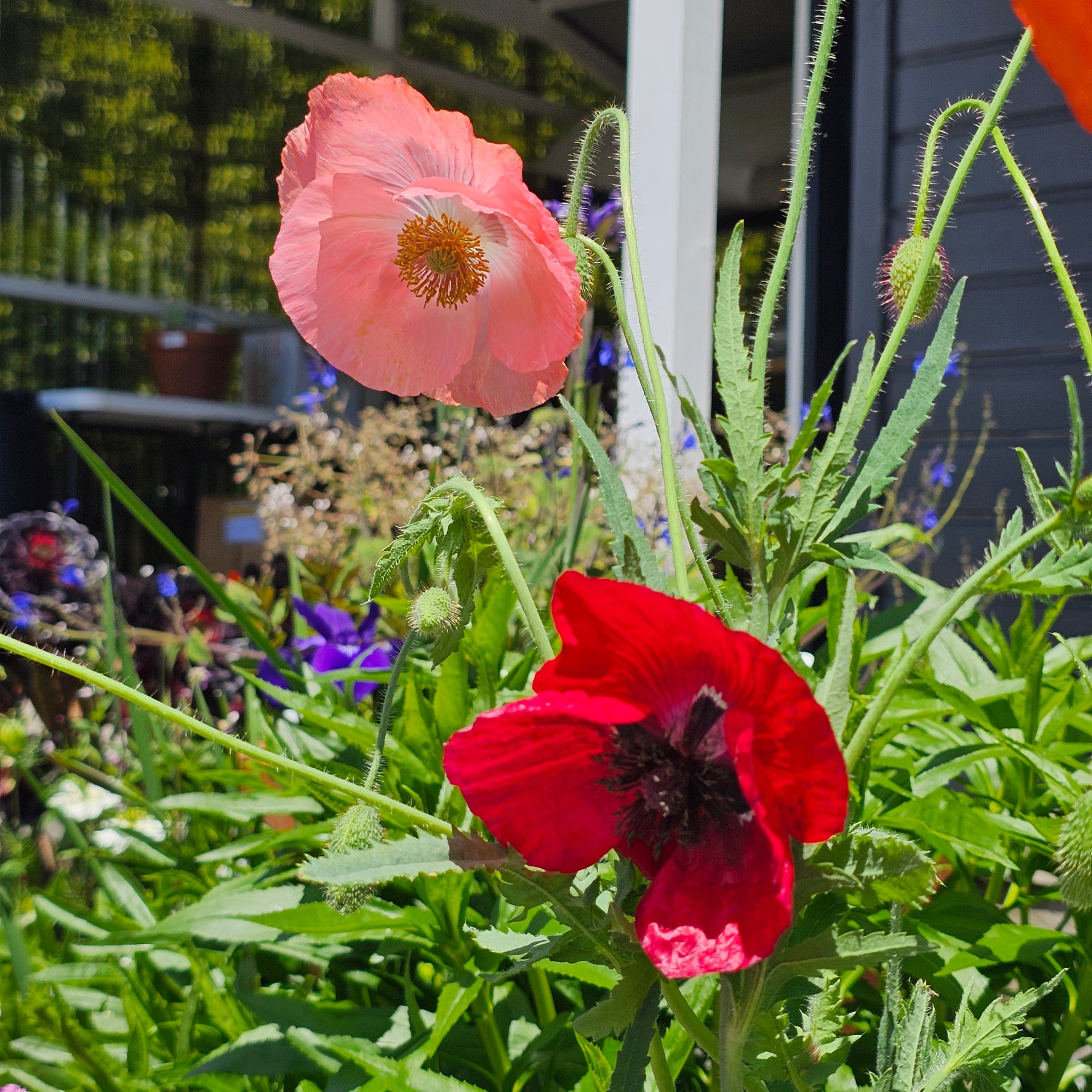 'Angel's Choir' poppies are annual plants, known for their delicate, tissue-paper-like petals. These poppies typically reach a height of about 30cm - 60cm. The flowers come in a range of colors, including white, pink, red, and variations thereof, often with a darker basal blotch.