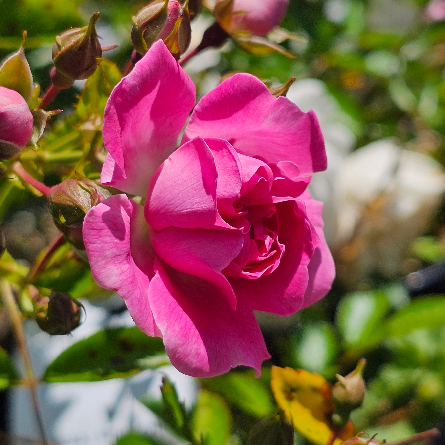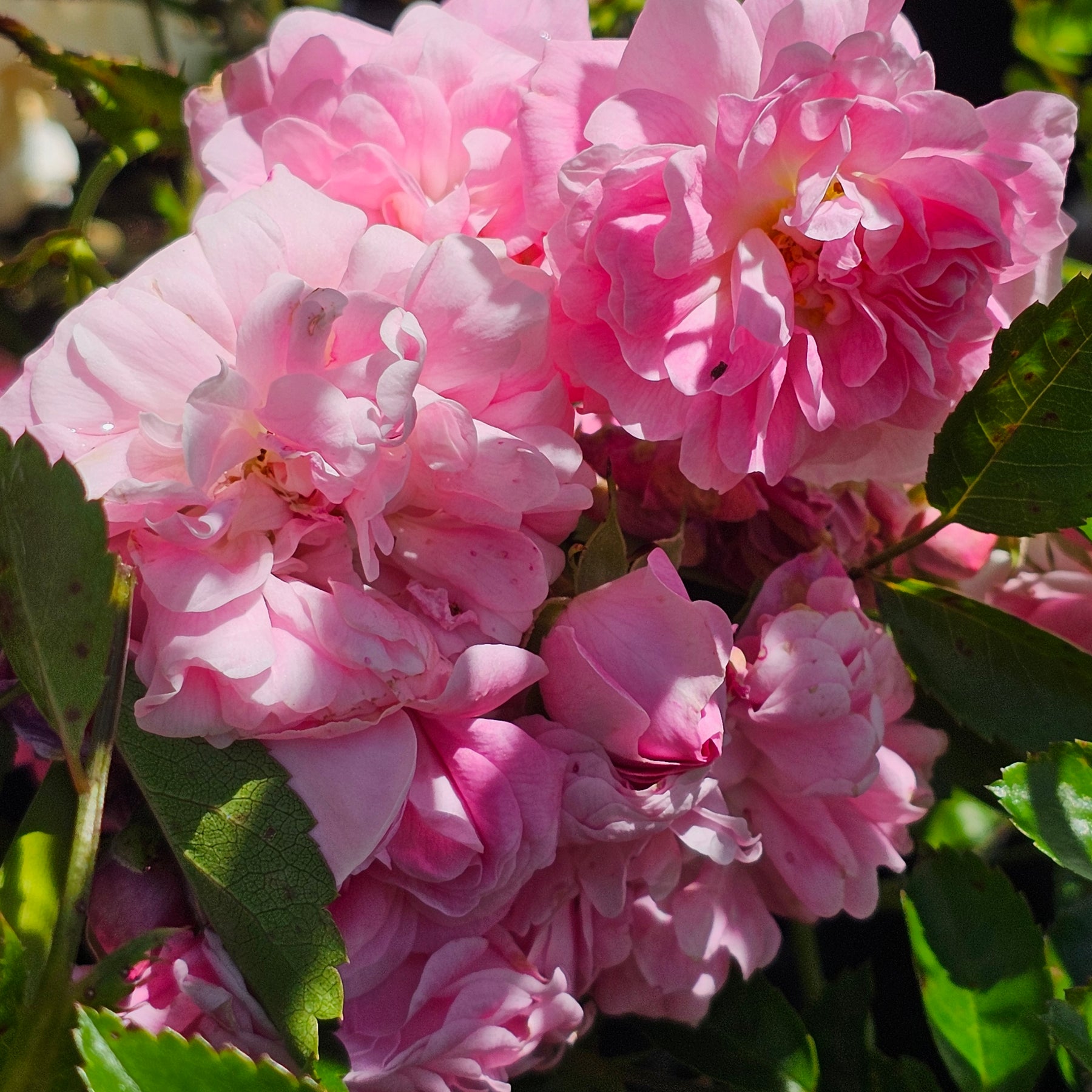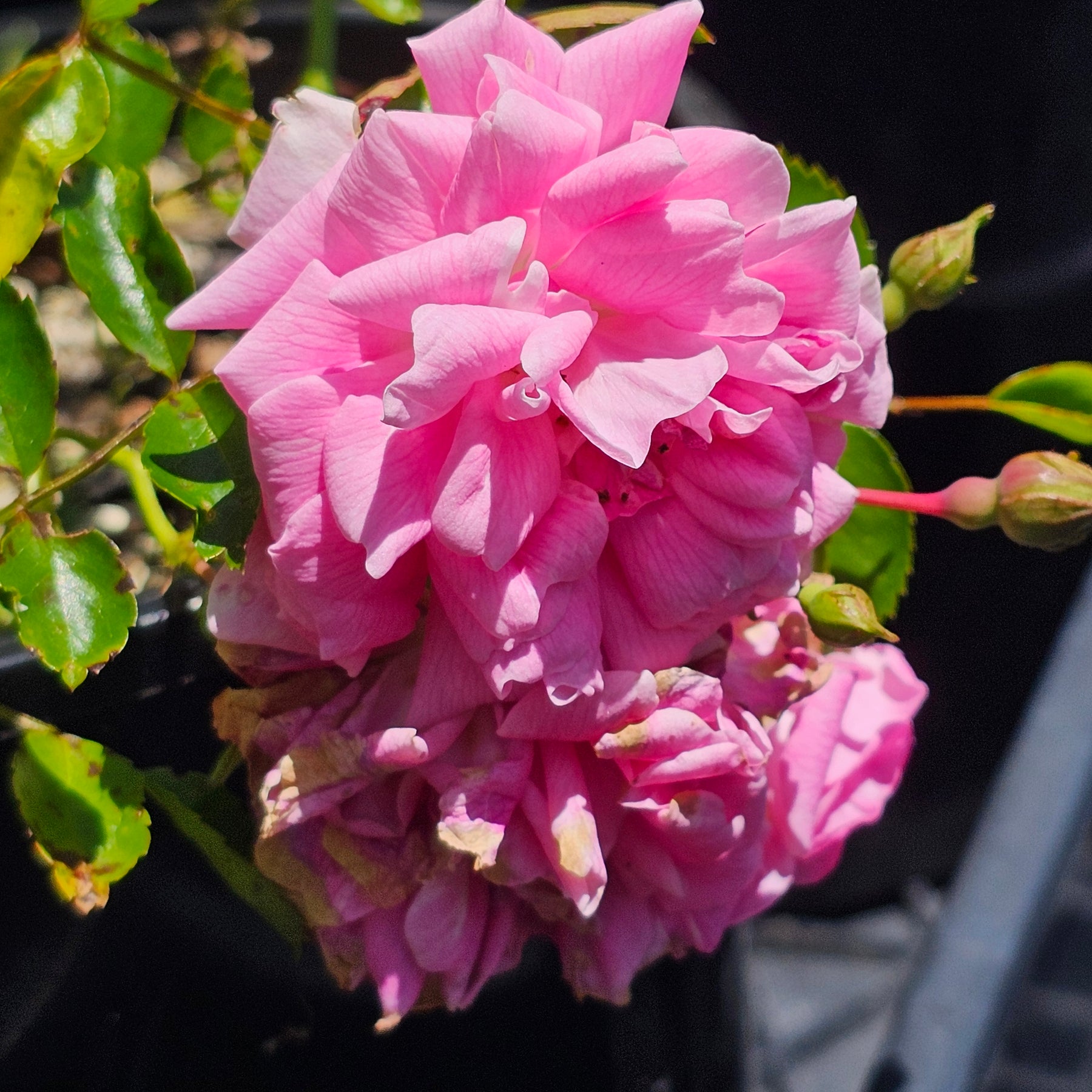 A beautiful, rambling David Austin rose with large clusters of small, double, deep pink flowers which fade out to almost white. Late season flowering, vigorous growth with small glossy foliage and a light musk scent.